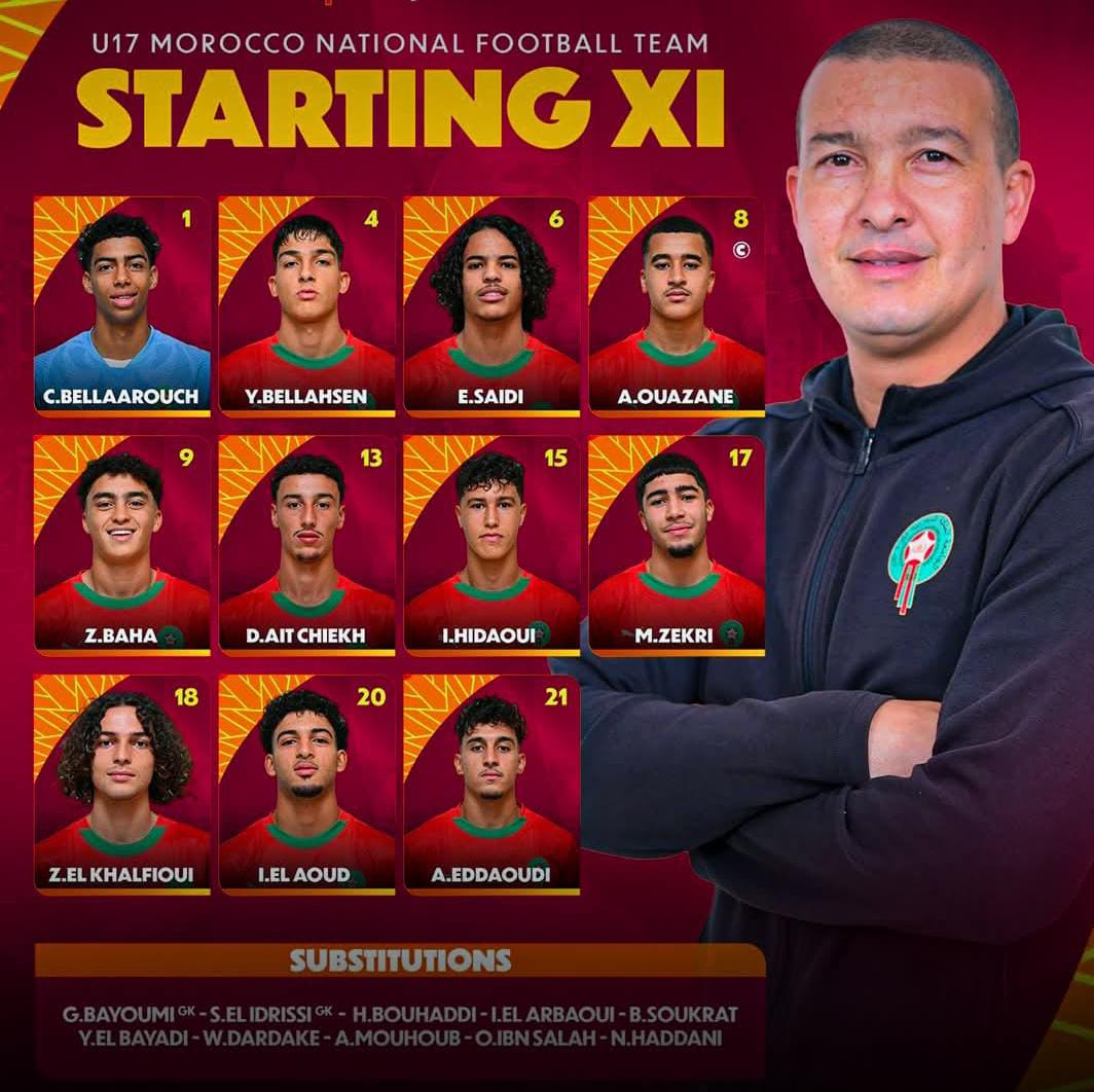 التشكيل الرسمي للمنتخب الوطني المغربي لأقل من 17 سنة